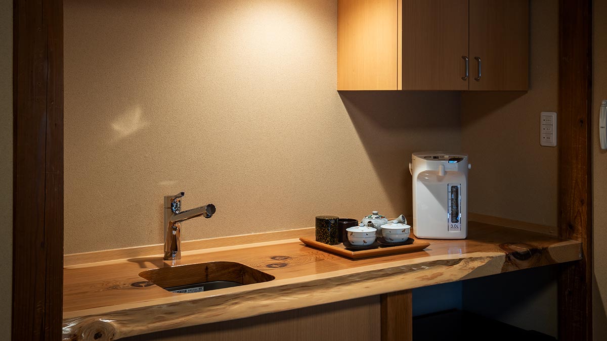 | 全室標準設備 | フリーWi-Fi / テレビ(液晶) / 冷蔵庫 / 加湿空気清浄機 / ドライヤー / 湯沸かしポット / 湯茶セット / 浴衣 / ナイトウェア / 歯ブラシ / タオル / バスタオル / 綿棒 / 髭剃り(シェービングフォーム) / ブラシ / シャワーキャップ / 化粧水 / 乳液 / コットン / クレンジング ※シャンプー / リンス / ボディーソープは露天風呂付客室のみ |